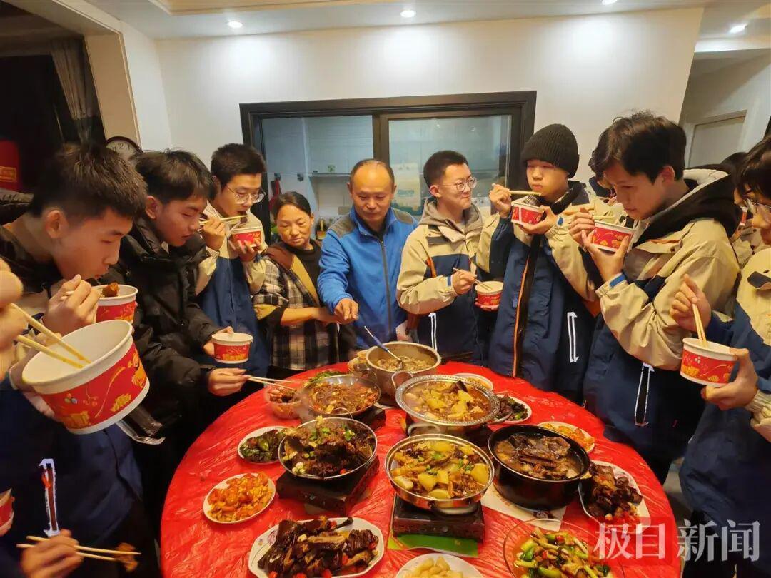 “哇塞,我最爱吃程老师做的牛杂火锅啦,餐馆的大厨都烧不出这个味道!”2026年1月14日晚,在湖北黄石市阳新县华成新都小区的一栋居民楼里,阳新一中高三年级主任程志勇家中热闹非凡。不大的客厅里满满当当地挤着26名学生,他们一个个脸上洋溢着欢快的笑容,围坐在摆满美食的桌前,大快朵颐。