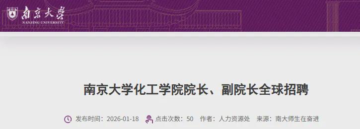 C9高校罕见操作!南大两学院院长全球公开招聘,打破内部提拔传统