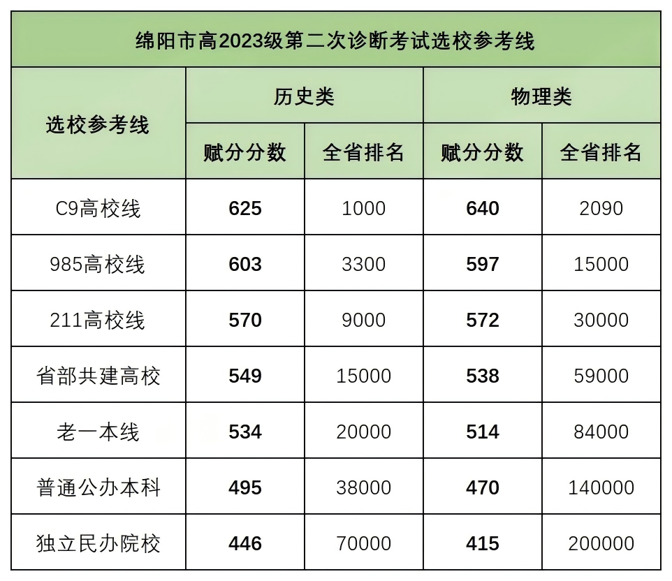 2026届绵阳二诊选校参考线