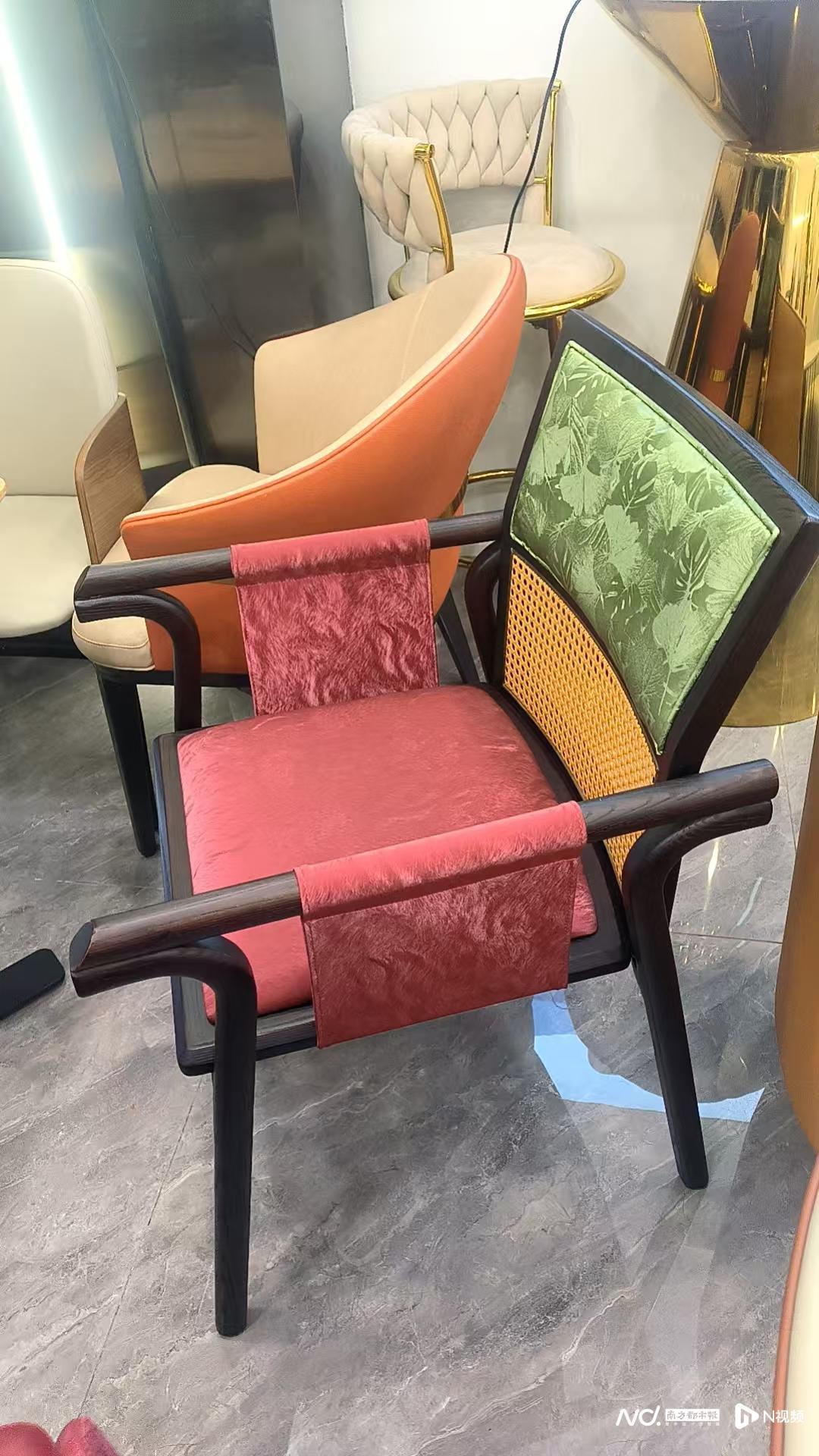 “我打算买几把椅子,种类和选择实在太多了,花了我整整三天去挑。最后看中的是一张红绿撞色的木椅,座面和靠背布料有植物暗纹,深色木质加上黄色藤编又富有层次。”丹尼尔森介绍说。