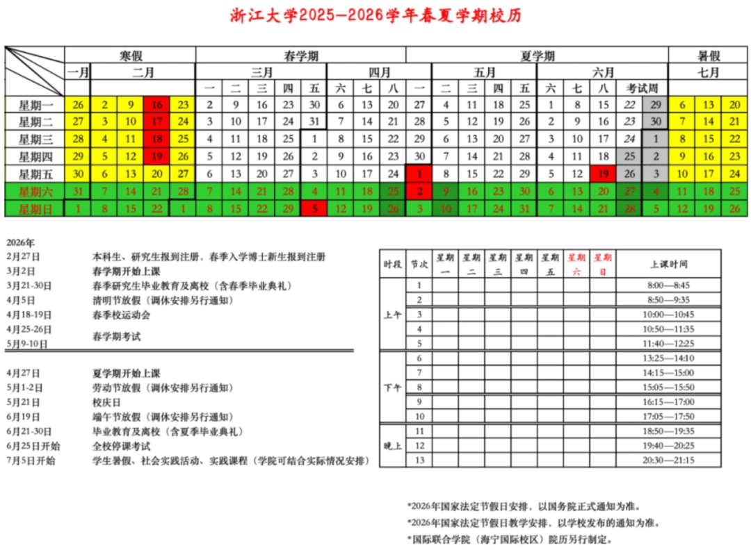 2025-2026学年春夏学期假期安排