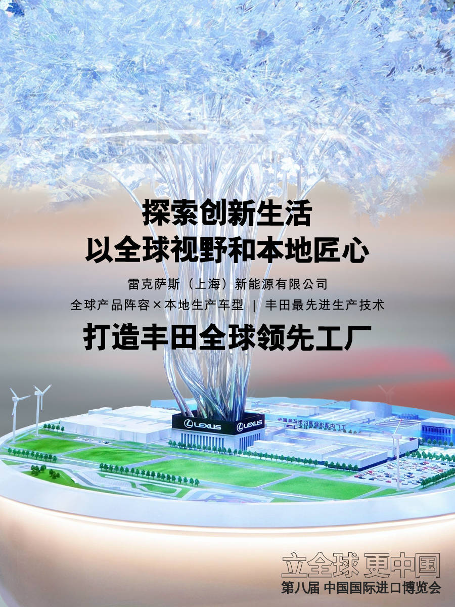 这份跨越时光的底色从未停滞生长,我们看到,在此次进博会上,这份底色添上了一笔跃动的亮色——雷克萨斯(上海)新能源有限公司,首次以沙盘形式展示。