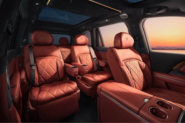 内饰方面,岚图泰山以“山海万象”为主题,通过东方山水意境打造沉浸式美学空间。车内大量运用山水意境孔纹皮革,以5种规格交叠呈现,搭配总面积1.228㎡的山水流韵木饰,全车11处精嵌流动木纹,将自然意境融入每一处细节。座椅采用AI云舒设计,基于“黄金比例”与医学团队联合研发,可完美贴合人体腰椎曲度。一键开启零重力功能后,座椅自动调整至科学悬浮姿态,内置66颗高精度传感器实时感知坐姿,动态调节压力分布,配合26个按摩点位与8种模式,覆盖全身关键肌群,有效缓解久坐疲劳。