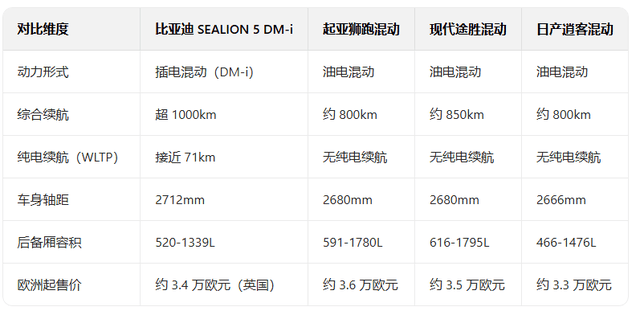 比亚迪这步棋走得聪明。用插混打欧洲市场,避开了纯电基础设施不完善的短板,又能蹭到"新能源"的热度。SEALION 5的产品力不差,但想撼动Sportage和Tucson的地位,没那么容易。