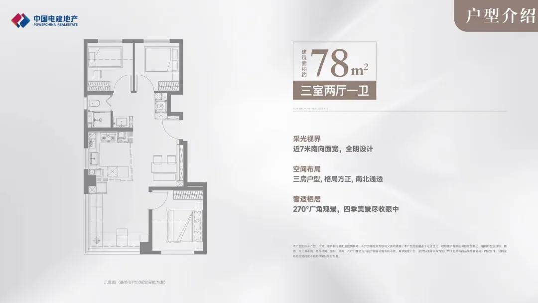 以最小的78平米三居为例,它打破了传统小户型局促的刻板印象,利用270度转角窗,让客厅获得了惊人的通透感。