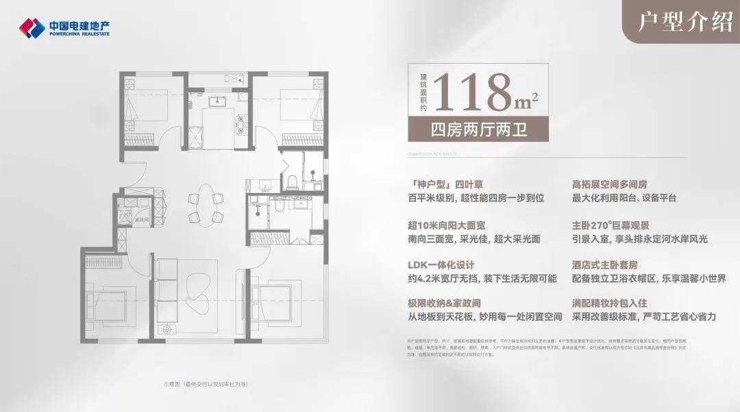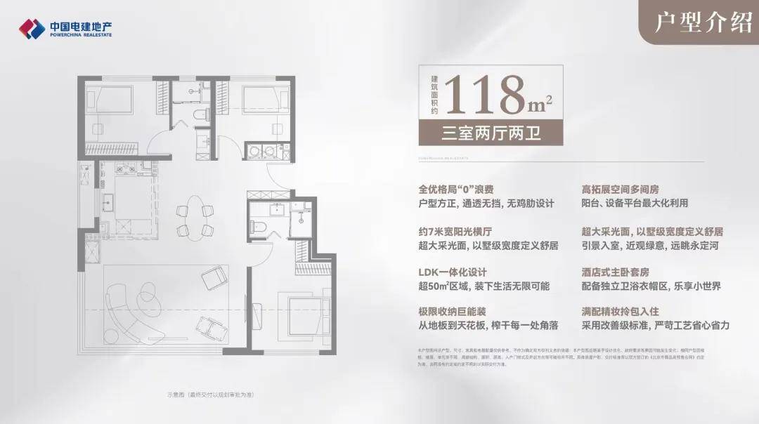 118平米户型,竟然做出了面宽约7米的超大横厅,配合转角落地窗,空间感直逼高端改善盘。在严格控制总价的前提下,这种对居住舒适度的极致追求,无疑击中了众多“想住得好一点”的刚改家庭的心。