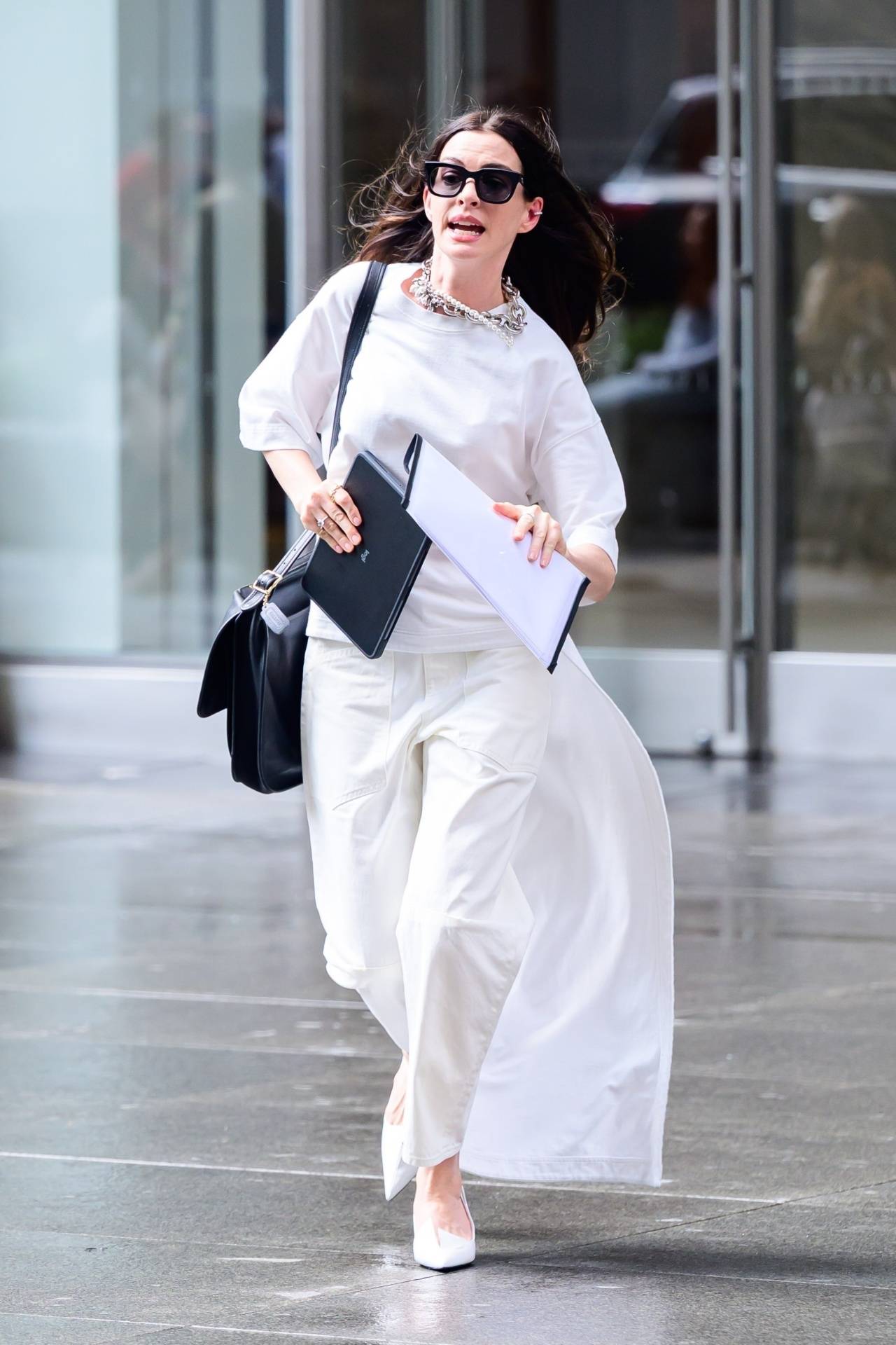 女主Anne Hathaway已经曝光多套造型,但却被全网吐槽审美降级,只怪第一部的造型太过经典,很难被超越,经济上行的审美具象化了。在第一部的结尾,女主Andy离开了《RUNWAY》杂志,去了自己梦想的《纽约客》,对于这一部的剧情猜想,Andy离开时尚圈,造型也相比更接地气一些。