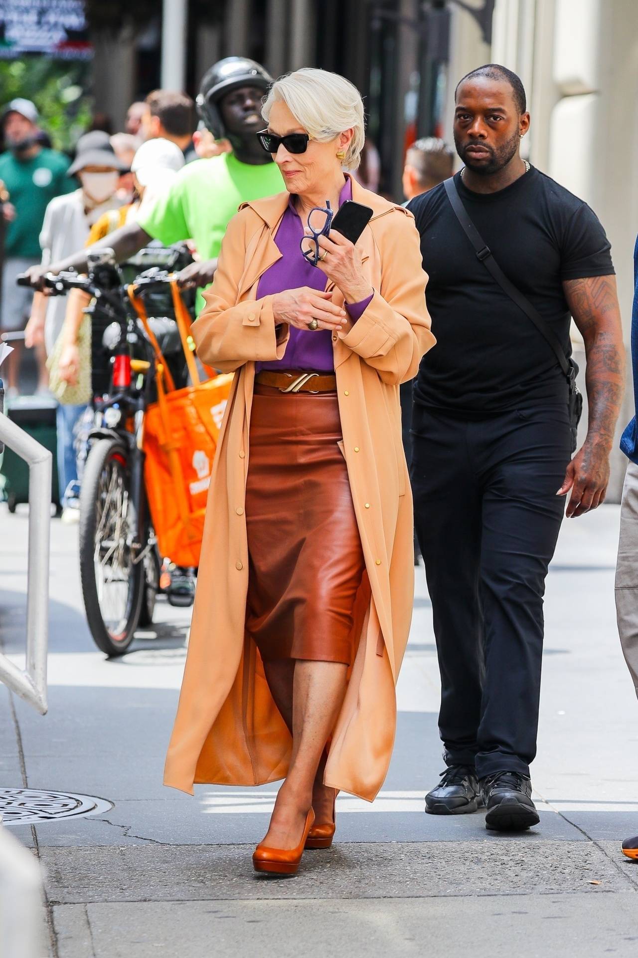 看完Andy的造型,再来看看“时尚女魔头”Miranda的造型,这一部穿不穿Prada不知道,但看这剧照,梅姨跟20年前真的没什么区别啊!!