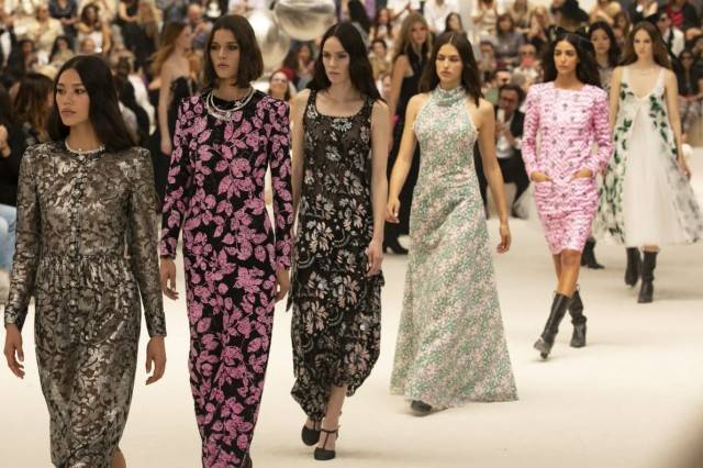 香奈儿带着它独有的雪花呢元素,加入了复古与创新,这个新系列的特色是 Gabriel Chanel 在 1930 年代的西装,以及合身的长裙。强调肩部轮廓的褶皱婚纱等,轻巧、女人味且适合穿着。