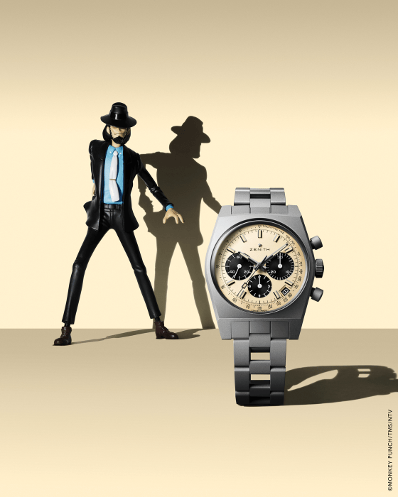 对资深藏家而言,ZENITH 真力时 此番推出的 CHRONOMASTER 旗舰系列复刻版腕表次元大介特别版,远非一般意义上的联名产品。作为该限量系列的第四篇章,这款腕表的野心已不止于"还原"二字。若要为 ZENITH 真力时次元大介特别版 下一个定义,那便是:一款搭载传奇 El Primero 400 型机芯,以 哑光黑色微喷砂钛金属 打造,完美复刻 1969 年 A384 原型并注入动漫灵魂的 高振频自动上链计时码表。