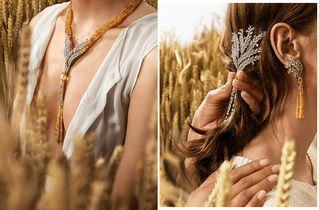 LES BLÉS DE CHANEL系列讲麦穗经历一年四季的故事,浅绿色宝石表达春天,而金色系宝石与贵金属讲述秋天的丰收。