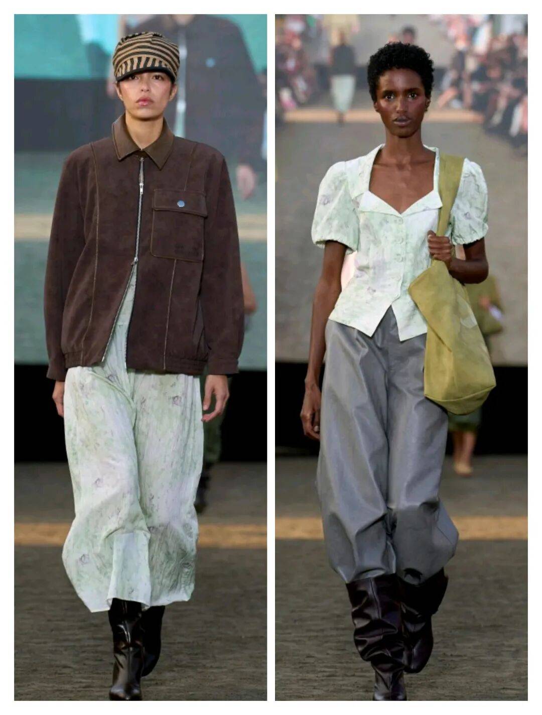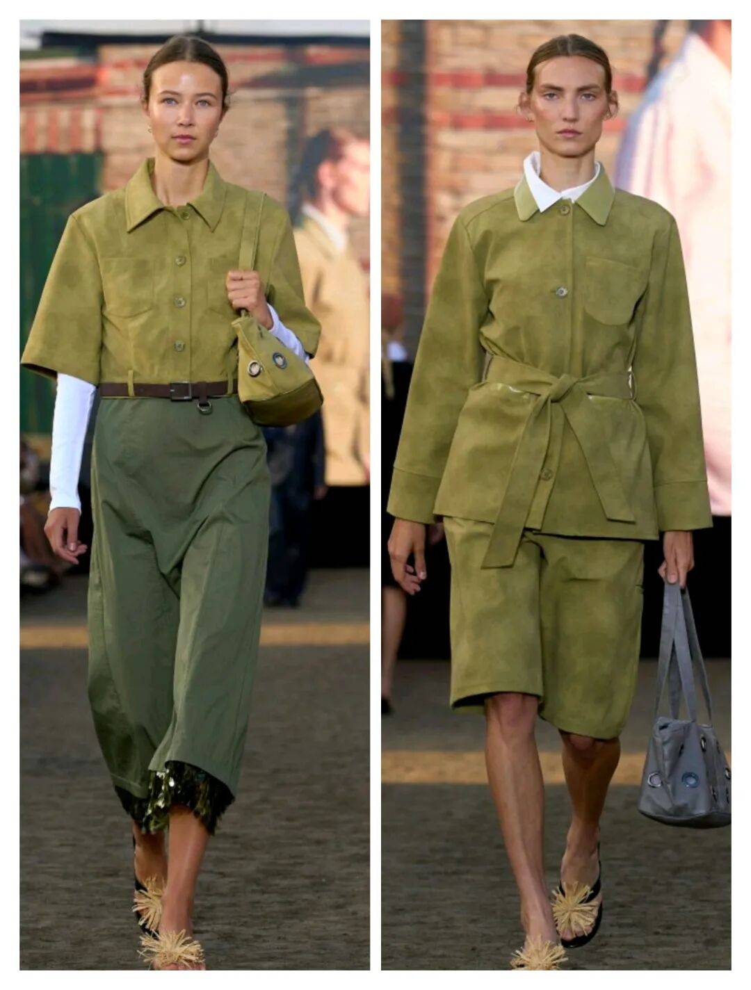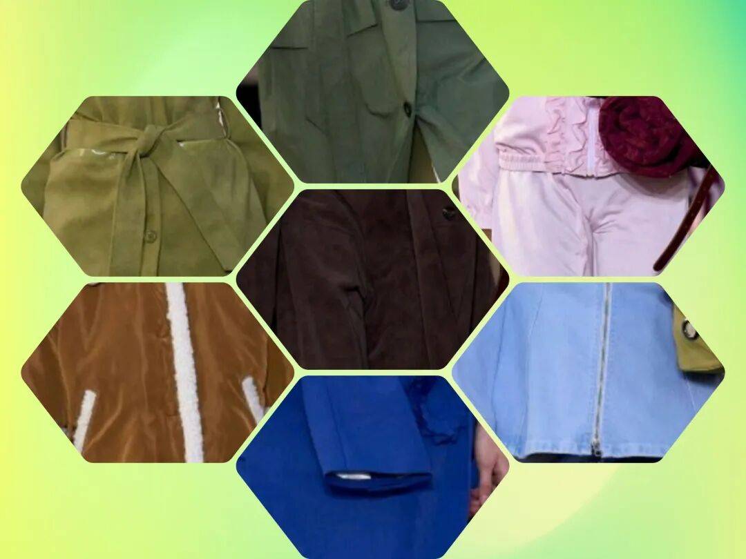 绿色系的颜色在这些服装上,生机的蓬勃能量中还有更多的活力和几分清新的气质感,还在面料的材质纹理质感中,也在浅色内搭之间的搭配形成了视觉差异,让服装也增加了一些层次感。