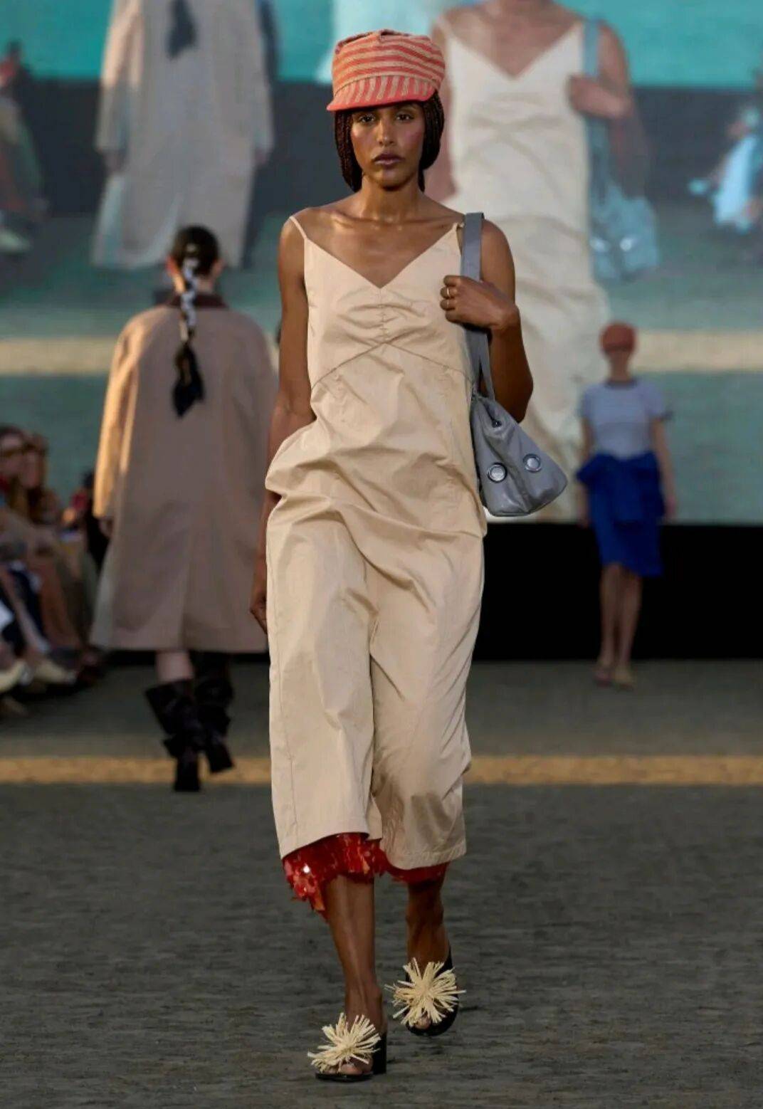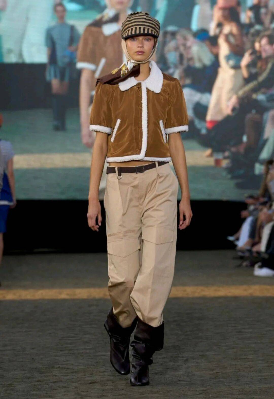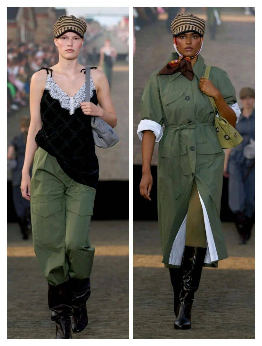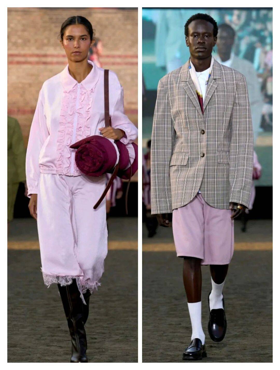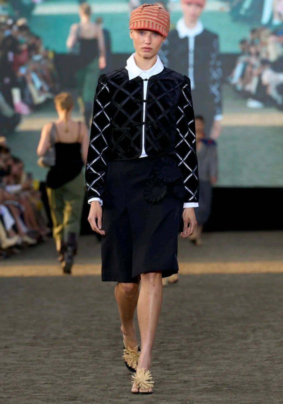 设计师不仅从骑手服装汲取灵感,还从赛马场观众的华丽着装中获得启发,探索表演与盛大场面的双重性 。