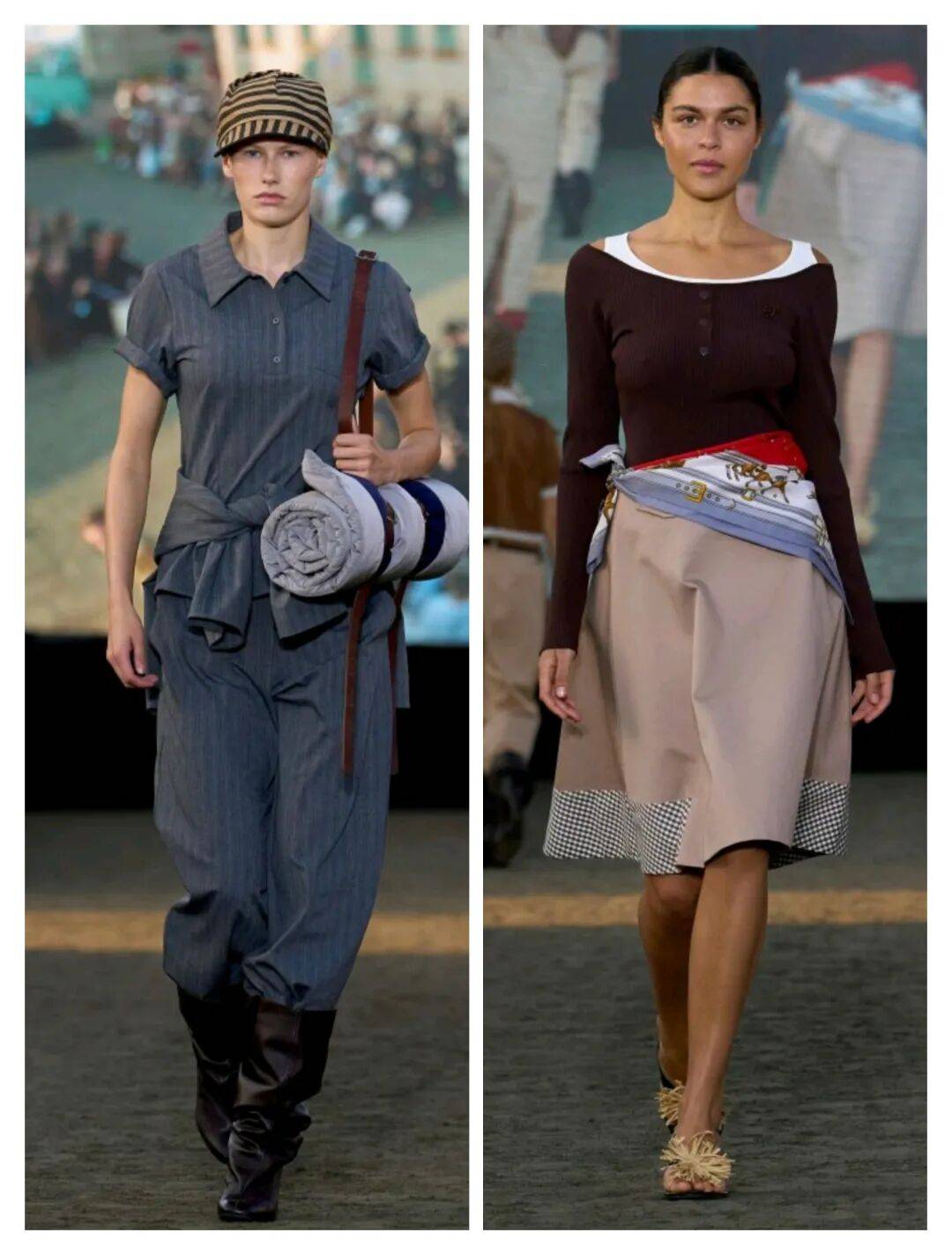 腰间的位置在打结系带、打结装饰丝巾等这些设计的结合中,也让不少的视线集中在了腰间的位置,而在一些色彩、质感、立体元素等这些搭配中,也让穿搭增加了不少细节亮点的时尚,还在灰色系、卡其色、白色等这些色彩上,也有着一些低调感。