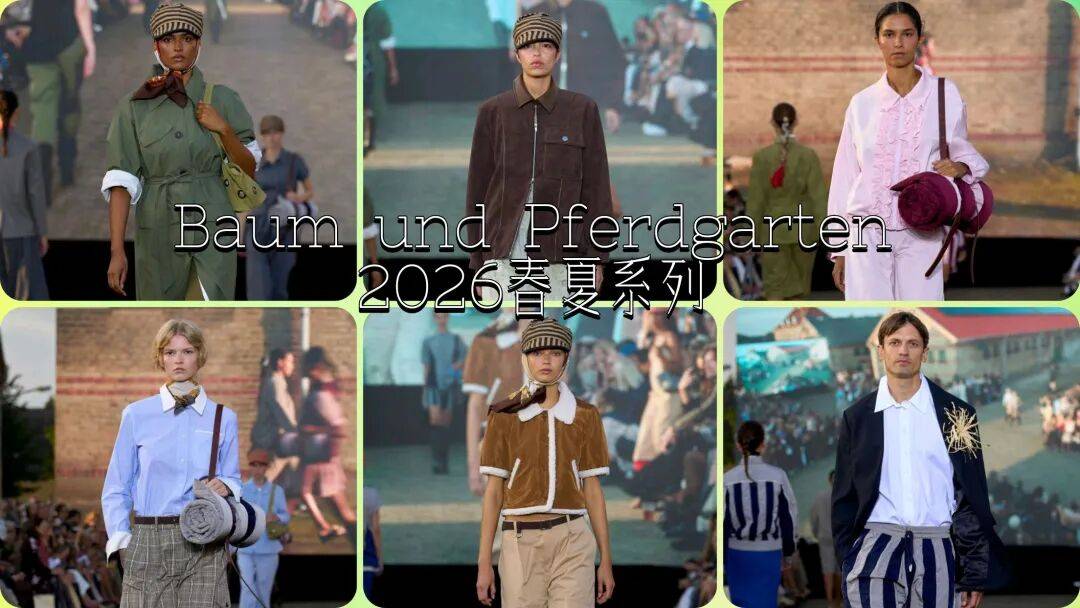 Baum und Pferdgarten 2026春夏系列"Notes from the Grandstand"巧妙融合马术元素与现代时尚,在历史悠久的赛马场呈现了一场视觉盛宴。设计师通过精准剪裁、大胆色彩和精致细节,将功能性与奢华感完美结合,既致敬传统又展现现代北欧设计精神。