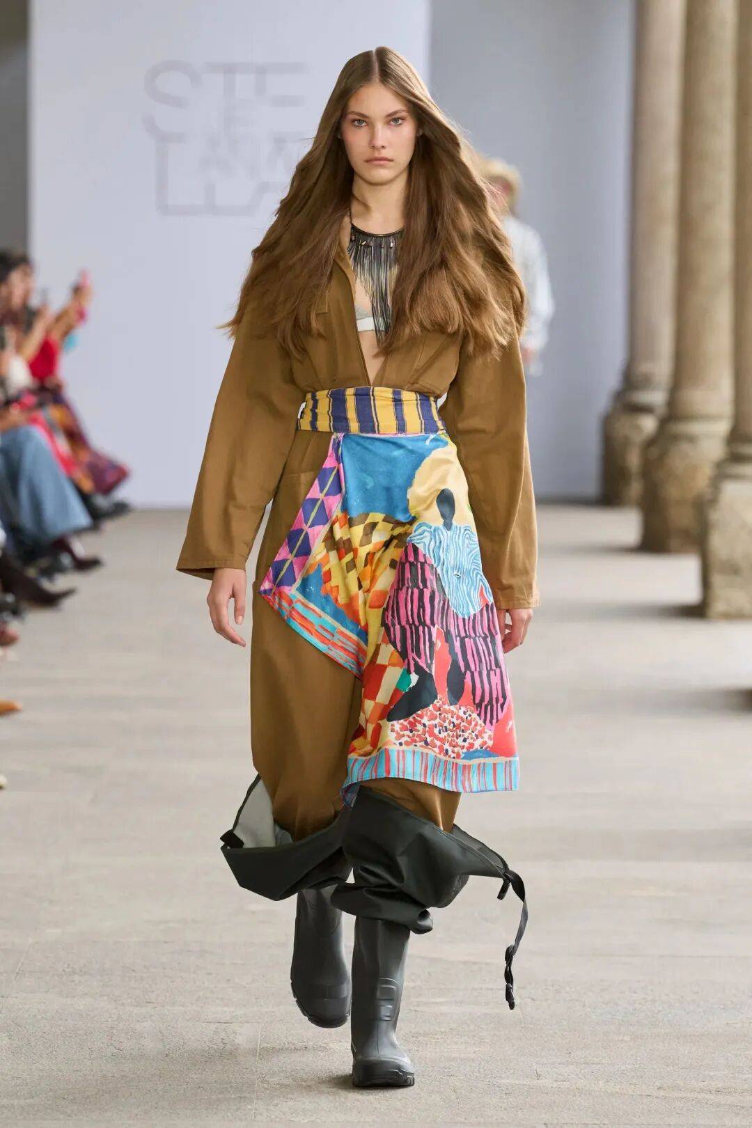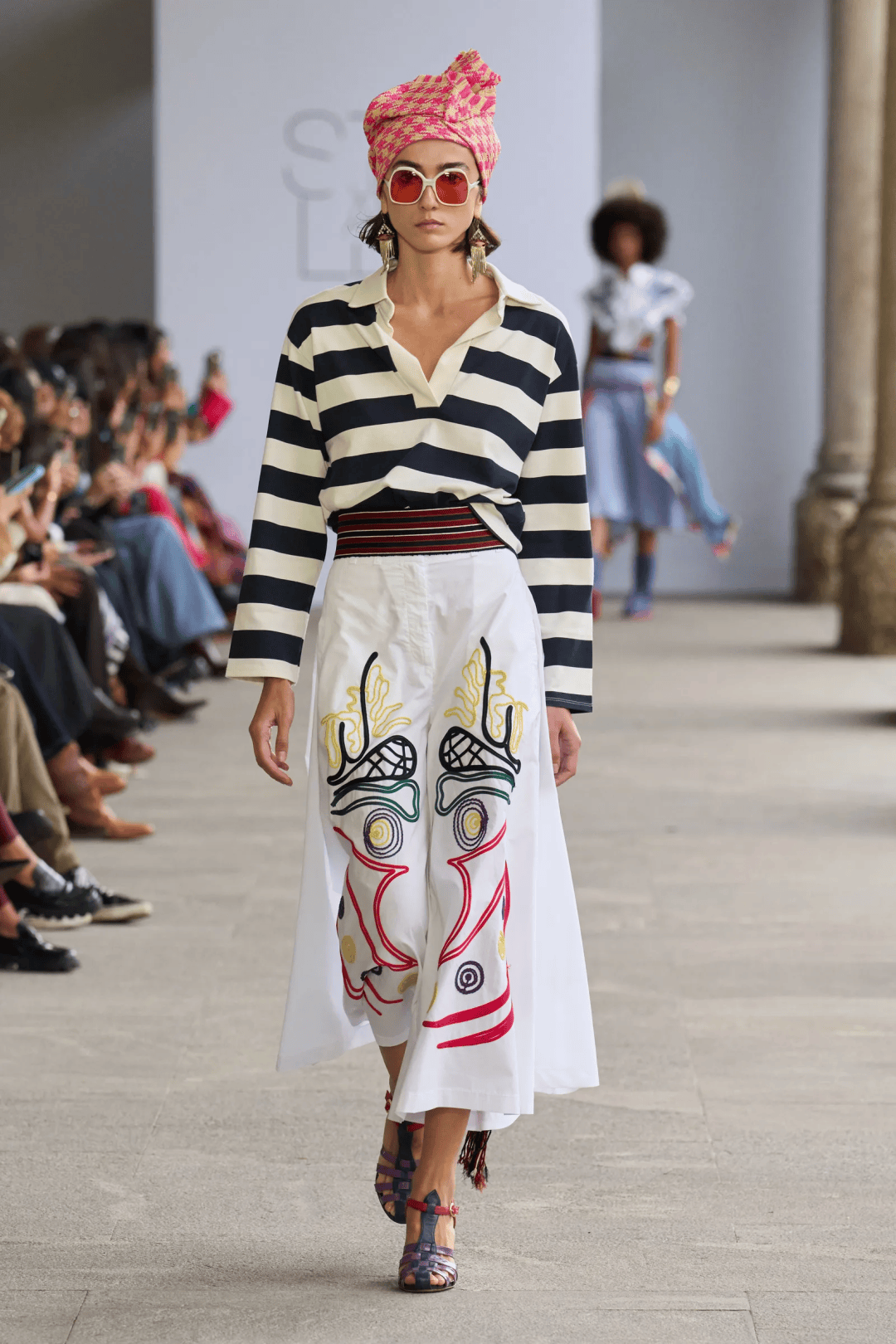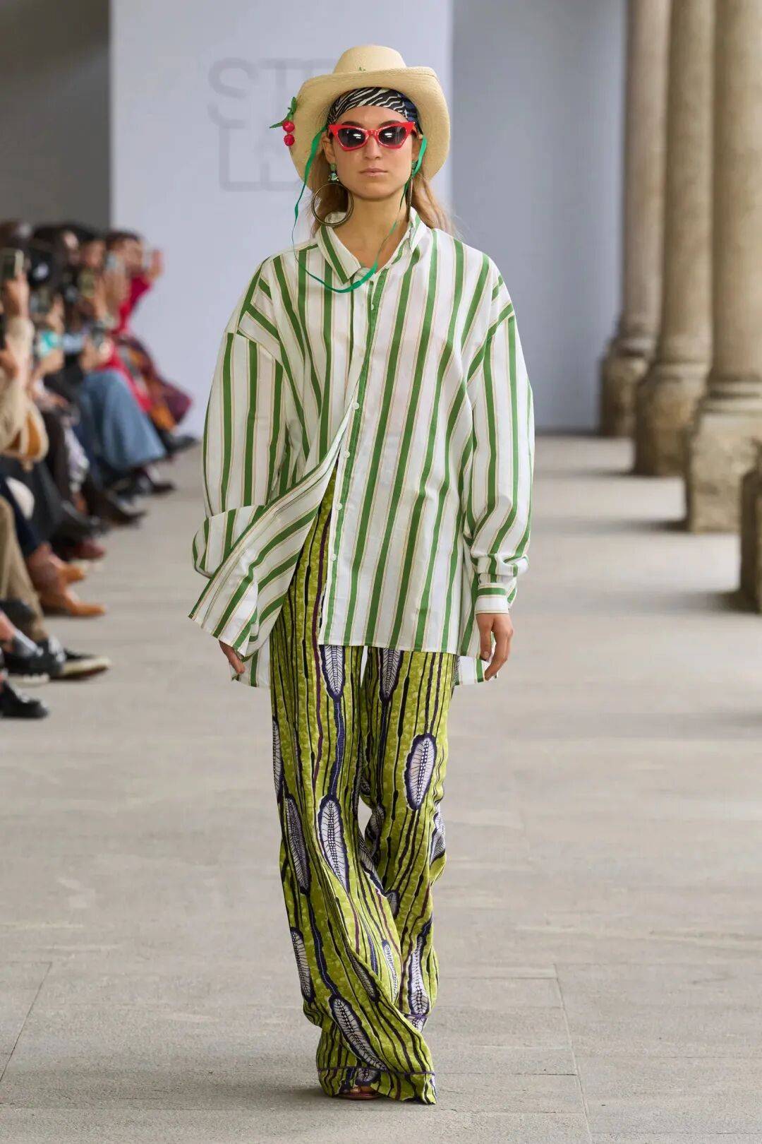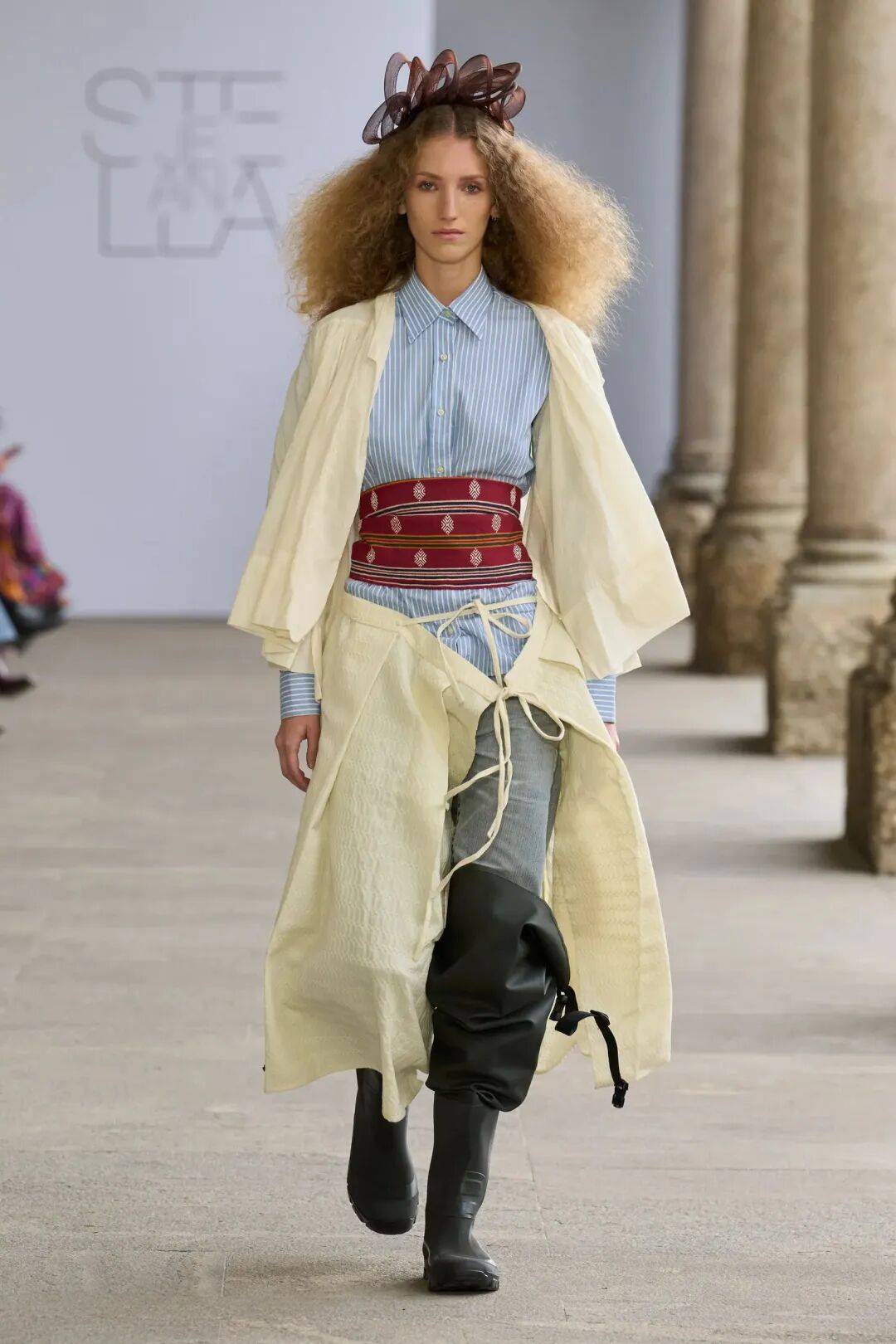 无论是内衬不丹纺织品的大衣,还是搭配结构感夹克的拉菲草裙,都展现了传统与现代之间的持续对话。