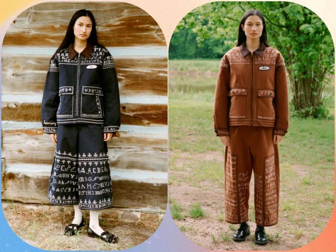 套装的穿搭以休闲上衣和宽松的廓形裤装为主,在线条的利落大方中,黑色和棕色颜色的低调朴素,在白色等浅色颜色的装饰中,形成了色彩的对比,在撞色冲击中为套装增加了花纹图案的活力气质。