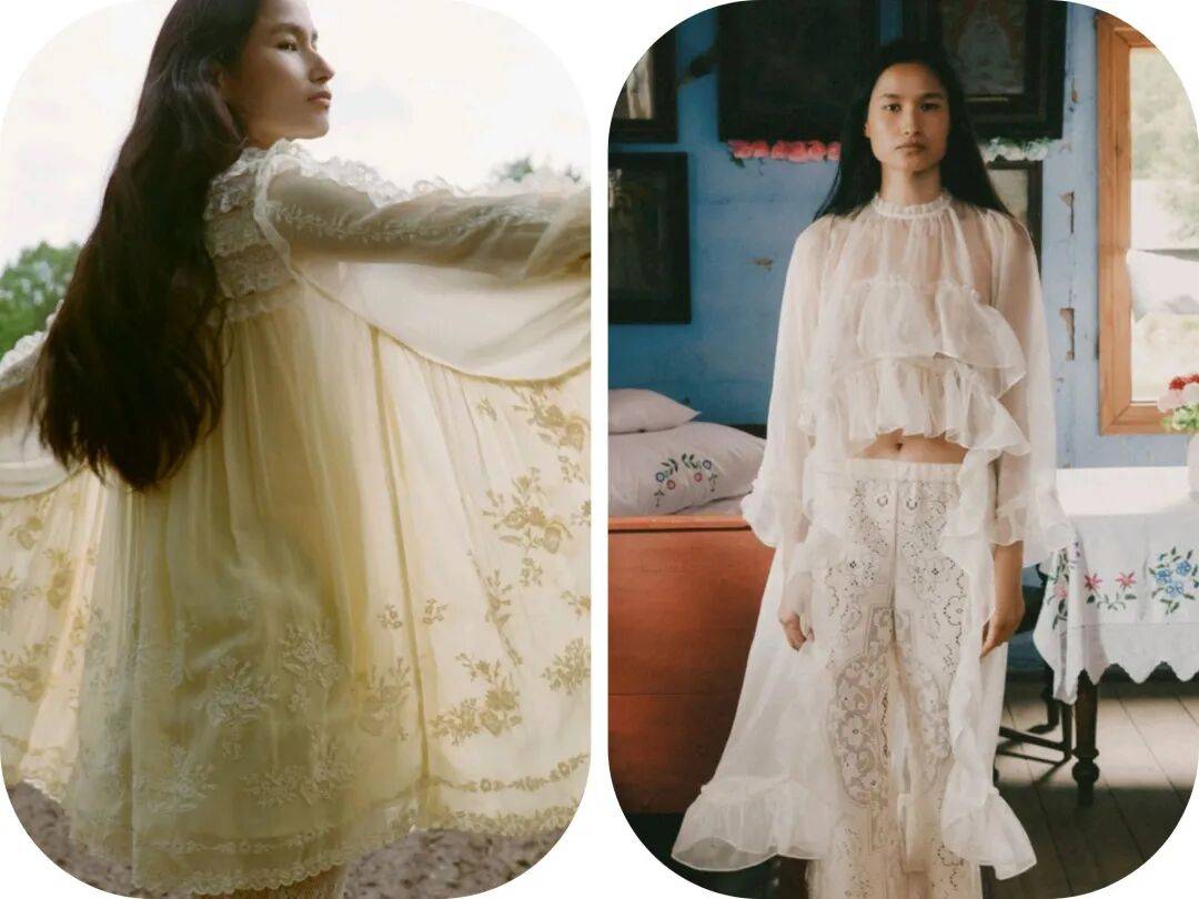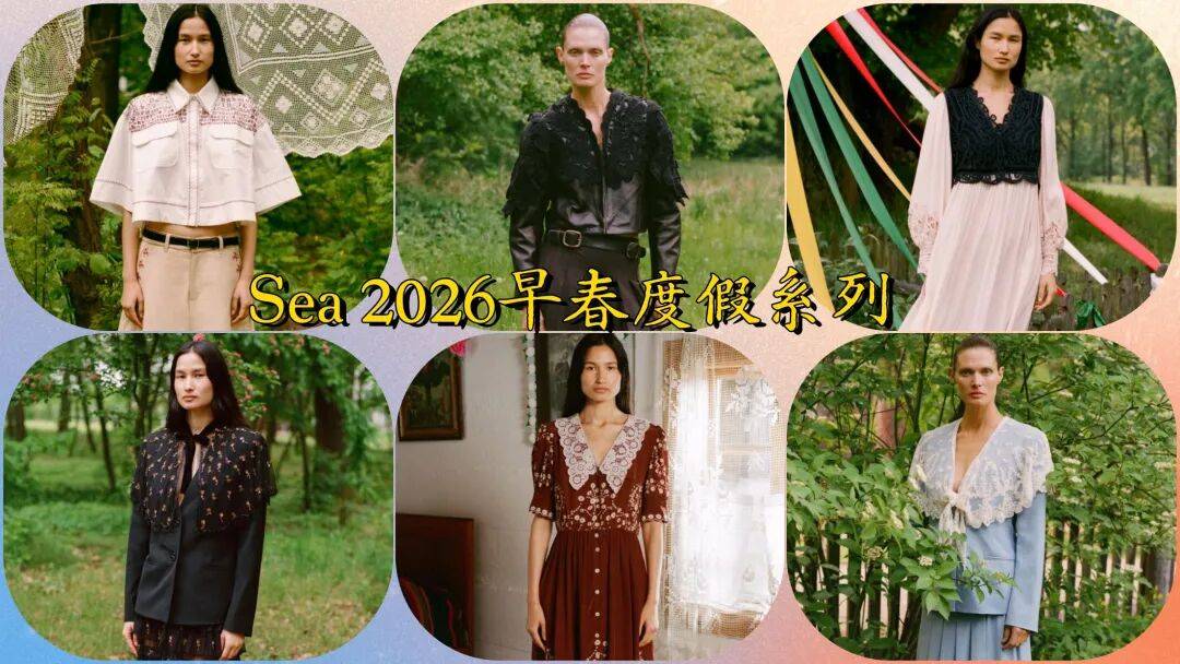 Sea 2026早春度假系列,这些服装在蕾丝面料、轻薄薄纱等这些的设计中,有着更多轻盈面料的薄透朦胧感,还在荷叶边、泡泡袖、夸张衣领等的细节之上,带来了更多的浪漫优雅的时髦气质。