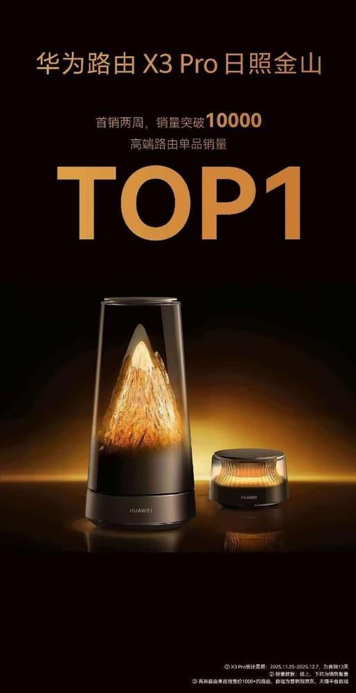 华为路由X3 Pro两周销量破万 拿下高端路由器销量第一
