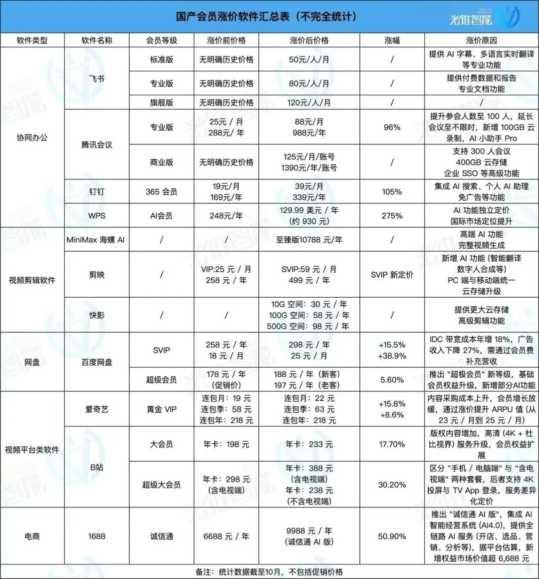 自2024年至今,从办公软件到视频工具,从个人会员到企业服务,一场席卷全行业的软件涨价潮悄然蔓延。